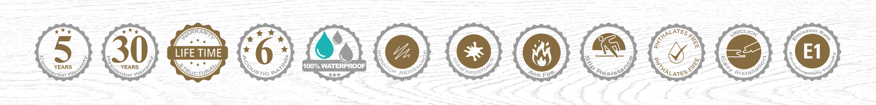 PRIMO WALK Premium SPC Hybrid Flooring boasts complete waterproofing, ensuring that it remains unaffected by water. This feature renders the flooring ideal for spaces susceptible to moisture like bathrooms, kitchens, and basements.